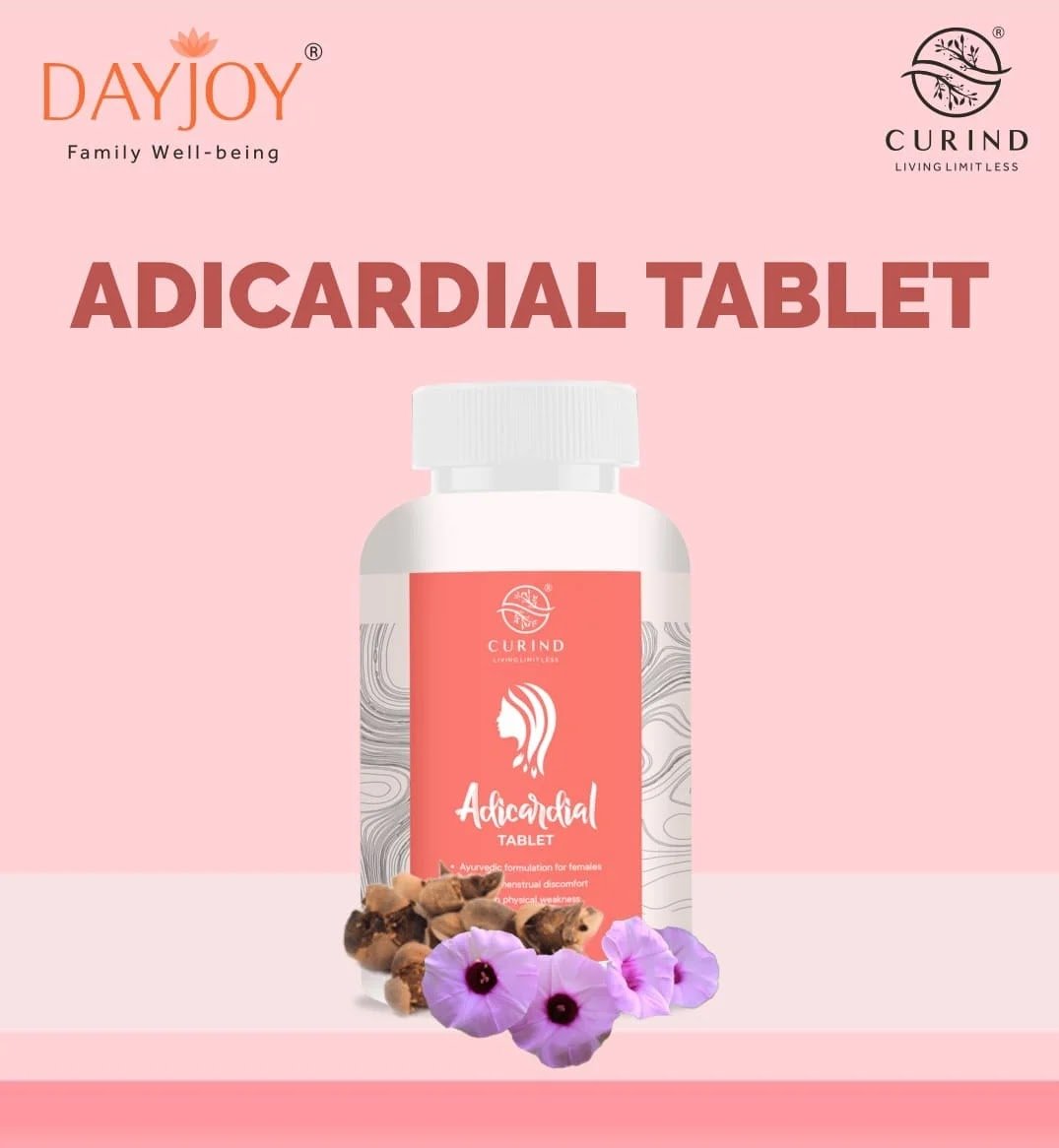 Curind’s Adicardial Tablets are specially formulated herbal supplements designed to provide comprehensive relief from menstrual irregularities, fatigue, and poor appetite. Enriched with natural ingredients like Ashwagandha, Manjistha, Vasaka, and Daruharidra, these tablets help balance hormones, regulate menstrual cycles, and promote overall vitality.