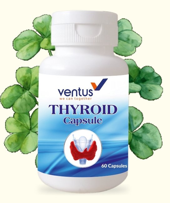 Thyroid Capsule by Ventus is a specially formulated herbal supplement designed to support healthy thyroid function, balance hormones, and improve metabolism. Made with a blend of natural ingredients like Ashwagandha, Brahmi, Aloe Vera, Ginger, Mulethi, and Trikatu, this capsule helps manage thyroid-related symptoms effectively and naturally.